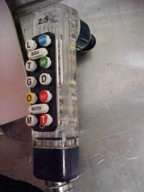 6 carbonated, 2 non-carbonated plus soda and water buttons. 36" stainless flex hose. Includes Kwik Klips and holster.